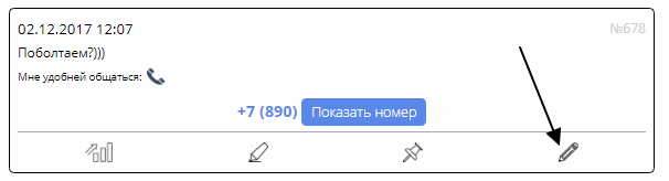 Для удаления объявления необходимо нажать на иконку редактирования: