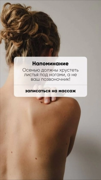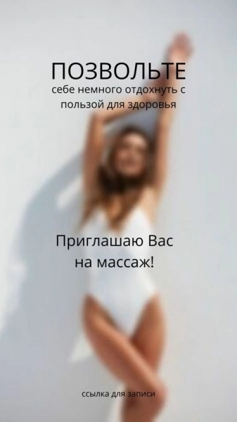 28.08.2025 17:14 №66237массаж поможет вам расслабиться в этот непростой для всех период. Даже один сеанс массажа поможет вам справиться со стрессом и избавиться от тревоги, а последующие сеансы помогут вам стать устойчивее к нервному напряжению, а осенью это особенно важно+7 (917) Показать номер
