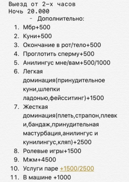 23.09.2020 19:01 №18422Здравствуйте уважаемыем мужчины секс мбр куни 2000 фото мои . Анала и выезда нету .центр .+7 (927) Показать номер