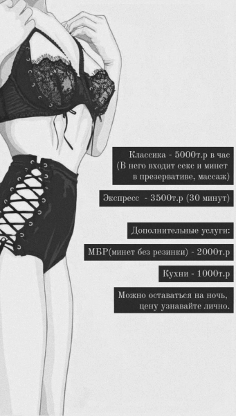 11.04.2023 14:26 №30886Привет❤️ Я стройная брюнетка, предлагаю свои услуги всего за 6000т.р. в час) экспресс 4000т.р.) Жду тебя, к себе в гости) Фото ТИПАЖ. Пиши на WhatsApp, скину свои фоточки (Без обмана)❤️+7 (987) Показать номер